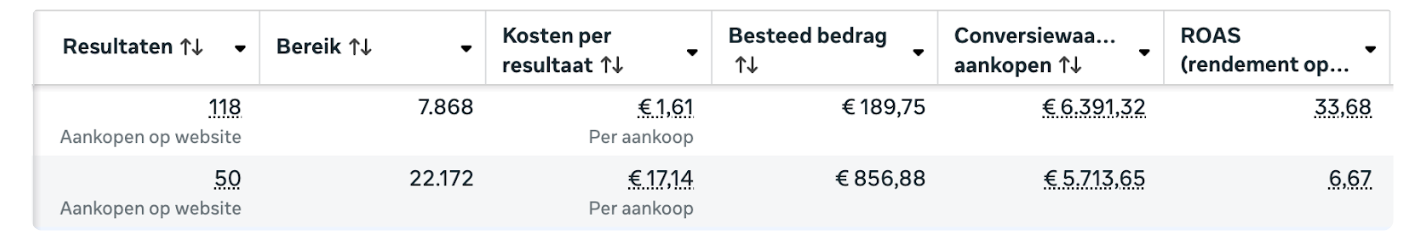 In slechts één maand tijd gaven we €1.002,08 uit aan advertenties. Dit leverde €9.922 aan aanbetalingen op. De uiteindelijke omzet ligt nog aanzienlijk hoger.